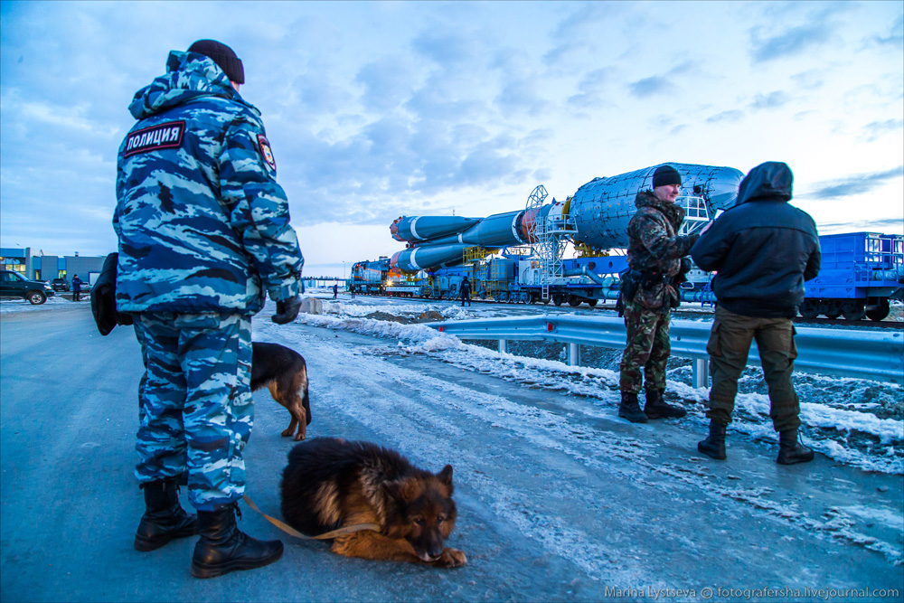 Территория космодрома закрытая, но охраны достаточно, никто не спит, некоторые только делают вид.