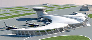 Тогда смотрите аэропорт в Монтевидео. Вот уж где летающая тарелка... Но это построено в 60е годы...