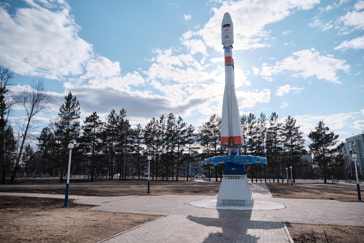 Амурчане и гости региона по прибытии в аэропорт Благовещенск будут знать — они прилетели в космический регион России. Перед зданием аэровокзала устанавливают 12-метровый макет ракеты-носителя «Союз-2». На нем красуется надпись: «Амурская земля — родина космодрома Восточный».