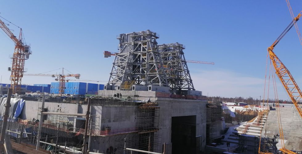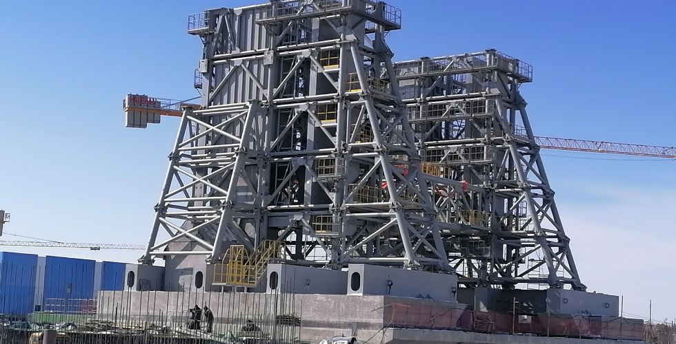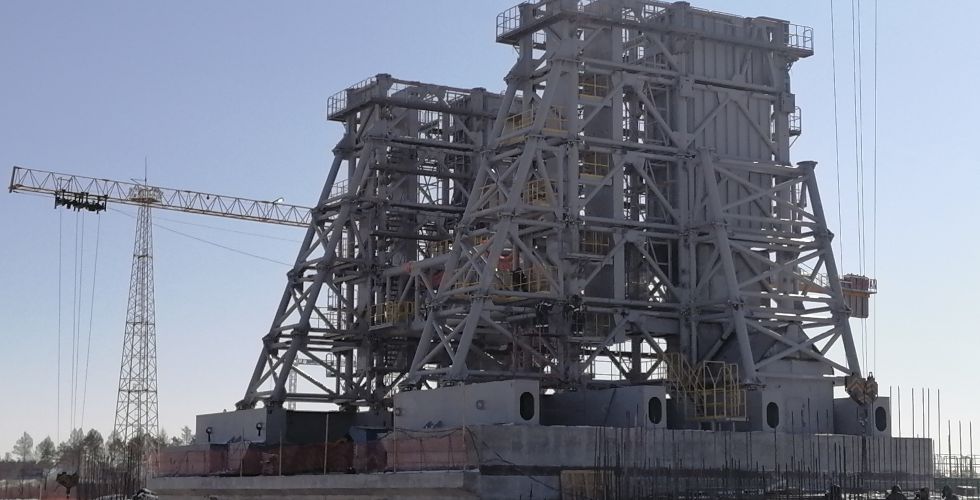 На строящемся стартовом комплексе для ракеты-носителя «Ангара» на космодроме Восточный завершили монтаж пятого этажа кабель-заправочной башни.