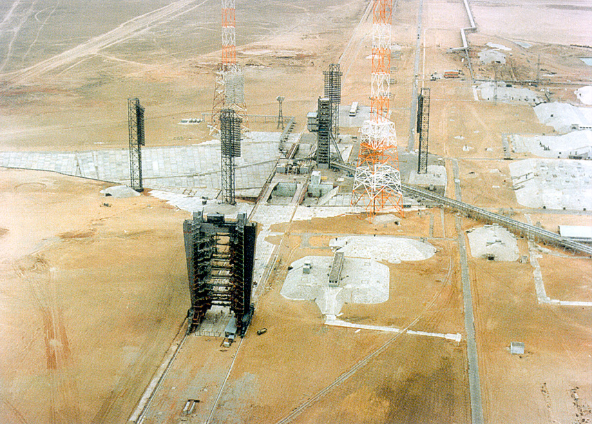 Союзовская башня в Куру обеспечивает монтаж КГЧ в вертикальном положении.