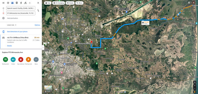 Просто все заговоры о том что у Маск космодром в глуши на болотах, ерунда.  Он строит на окраине города от которого до старта 21миля или 35 минут на машине. С аэропортом, жд, портом и населением под миллион человек.