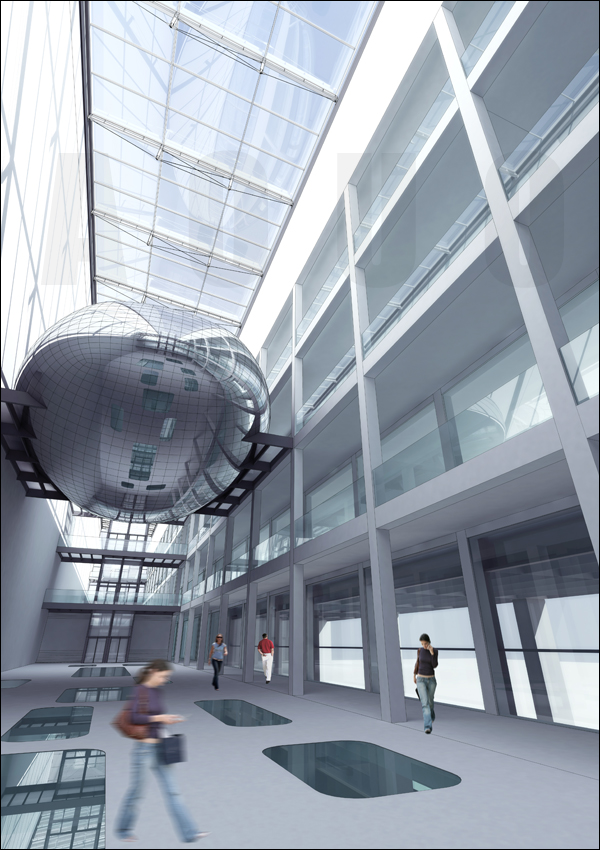 Интерьер атриума. Вид с уровня 3-го этажа: