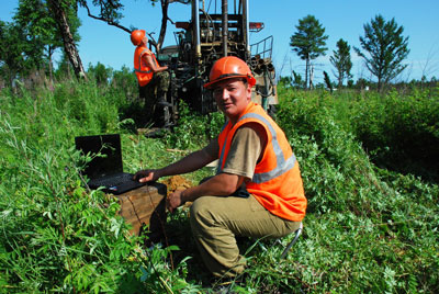 На земле будущего Восточного трудятся около сотни человек. Пробы грунта берут на глубине от 15 до 70 метров. Часть образцов отправляют в Благовещенск, остальное едет в лаборатории Хабаровска, Иркутска и Москвы. Лаборанты обрабатывают материал, наносят данные на карту. Всё это необходимые этапы работы над проектом. «Изыскания на этом объекте – если считать окончательную выдачу изысканий, отчётов, – завершим к сентябрю. Сейчас, чтобы время шло с ускорением, мы выдаём проектировщикам предварительные материалы. Они, не дожидаясь, когда мы окончательно завершим работы, уже ведут какие-то проектные проработки», – поясняет главный геолог Виктор Морозов.