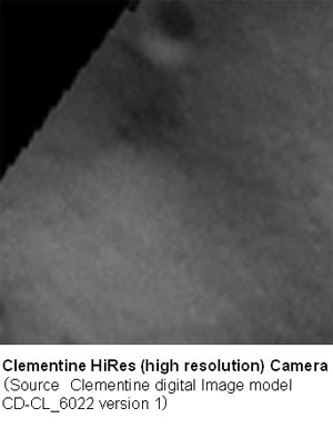 You can see the comparison between the image taken by the KAGUYA TC cut out from the TC's first image data (the area encircled by the yellow dot square in Figure 1) and the image shot by the high aerial resolution camera onboard the Clementine Satellite. In the TC camera image, you can see that the smaller craters (10-90 meters in size) and the minute structure of the inside of a crater.