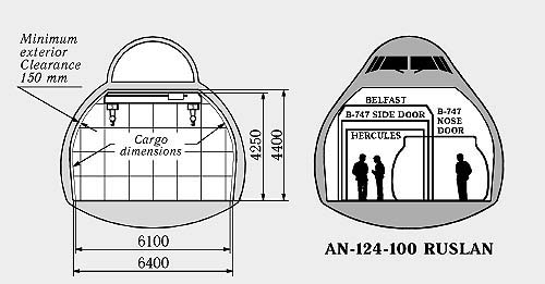 Что касается диаметра - в самолёт должны входить два стандартных контейнера рядом.