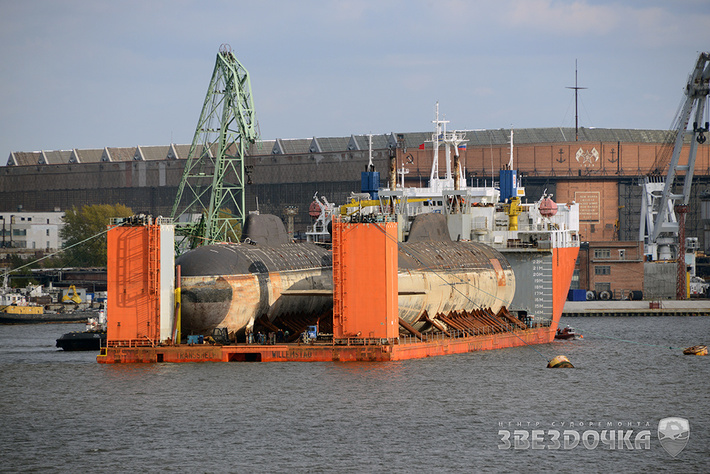 Публикуем фоторассказ о том, как на предприятие «Звёздочка» прибыли две подлодки проекта 971 — «Братск» и «Самара». В своё время многие страницы ЖЖ и других социальных сетей пестрили фотографиями и даже видеороликами с участием судна «Трансшельф», на «спину» которого были водружены два атомохода. Снимки, безусловно, эпичны, но весьма однообразны, поскольку большая их часть сделана с берега. По этому поводу было принято решение «приготовить» репортажик со «вкусной начинкой» в виде снимков, сделанных с самых разнообразных интересных ракурсов
