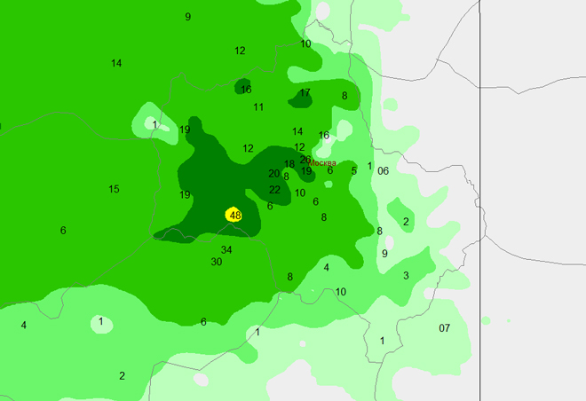 Ночные осадки 18 июля 2016 г. © Гисметео