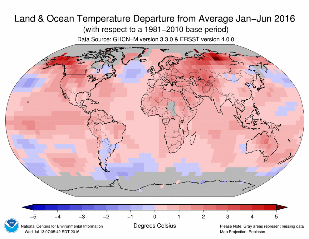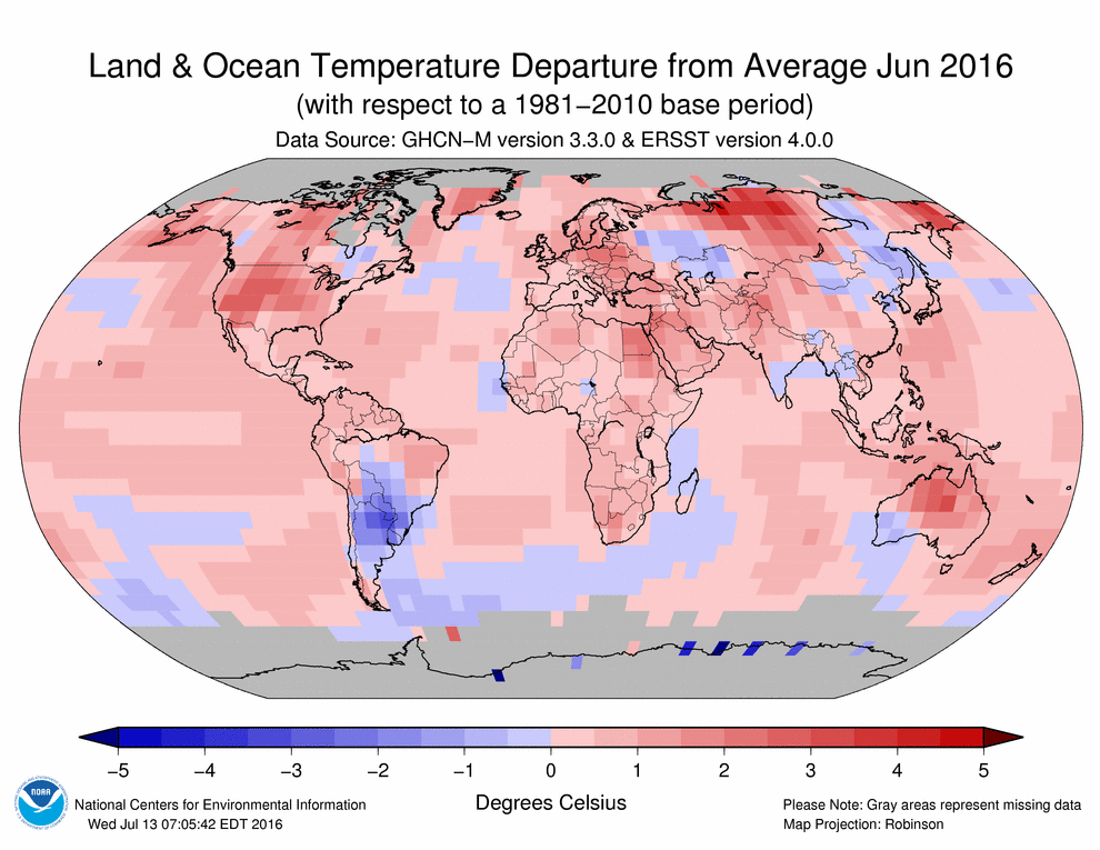 NOAA National Centers for Environmental Information, State of the Climate: Global Analysis for June 2016, published online July 2016, retrieved on July 19, 2016 fromhttp://www.ncdc.noaa.gov/sotc/global/201606.