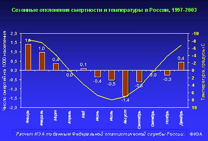 AR4 IPCC утверждает, что рост тепла приведет к росту «связанной с жарой смертности в Европе». Точно так. Рост жары приведет к росту смертности от жары, точно так же, как рост потребления персиков приведет к росту смертей от обжорства персиками. Вопрос в том, являются ли персики опасными? Вопрос в том, что является более опасным для человека — холод или жара. На этот вопрос статистика дает однозначный ответ: в любой стране смертность возрастает в холодное время года.