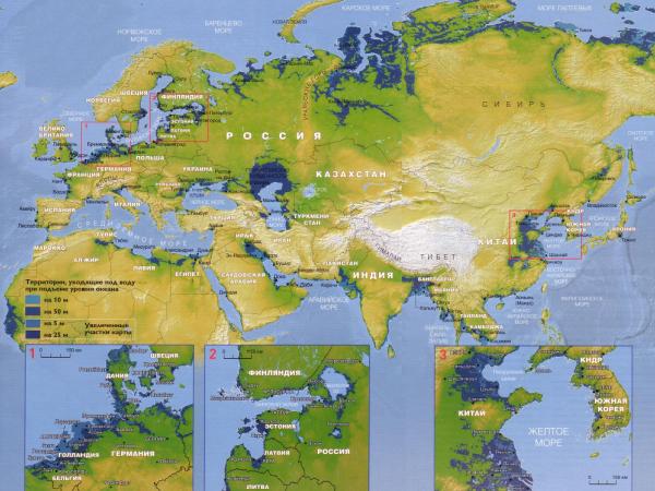 Карта затопления регионов при повышении уровня Мирового Океана в XXI веке.