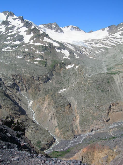 Цитировать— Как видите, ледник Чипер-Азау находился тогда метров на 600 ниже, сливался с ледником Малый Азау, который мы сейчас даже не видим, потому что он ушел за гору, по нашим исследованиям, еще в начале прошлого века они сливались и образовывали единый ледник — Большой Азау, который лежал на дне этого ущелья. В год ледники ежегодно отступают примерно на 10 метров. И не только белый настил, но и серый — вечная мерзлота... Хотя не по всему Эльбрусу — на северном склоне они даже прирастают, кроме того, увеличивается их толщина из-за возрастания осадков. Правда, большое количество снега ведет к новой проблеме — в долину Азау сходит все больше лавин.