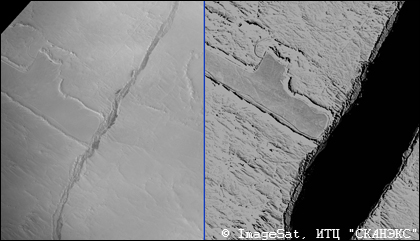Снимки с разрешением 0,7 м дают лучшее понимание динамики изменений ледового покрова в районе станции. Регулярная съемка с частотой раз в месяц позволит оценить степень изменения ледяного поля и смоделировать поведение льдины, на которой расположена станция.