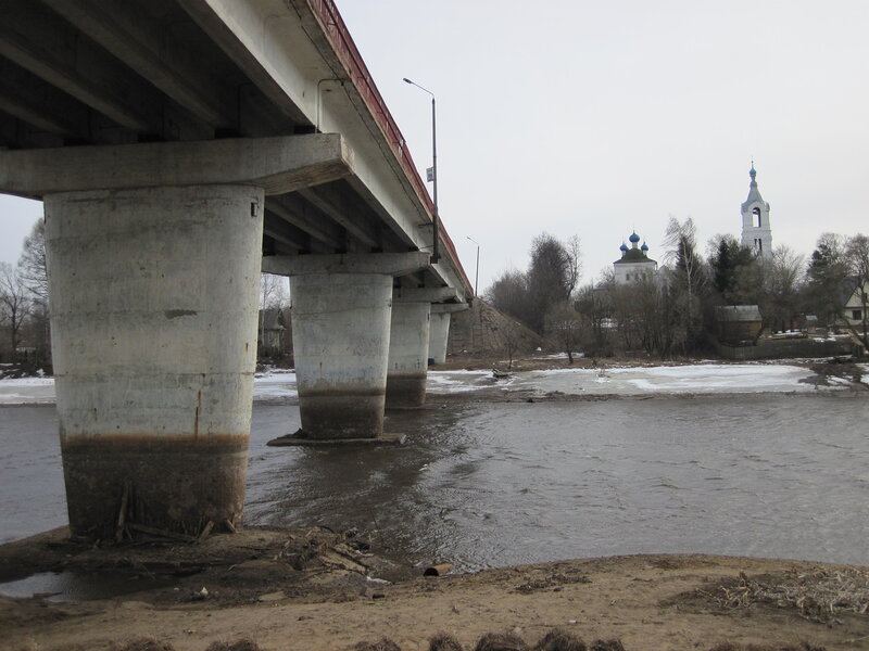 А это мост через Нерль, приток Волги. Обратите внимание на уровень воды обычный  (см.след на опорах моста) и сейчас