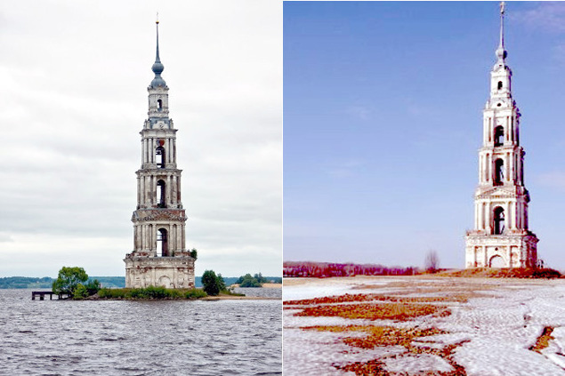 Обычно к колокольне кроме как на лодке не доберешься. Но только не теперь!