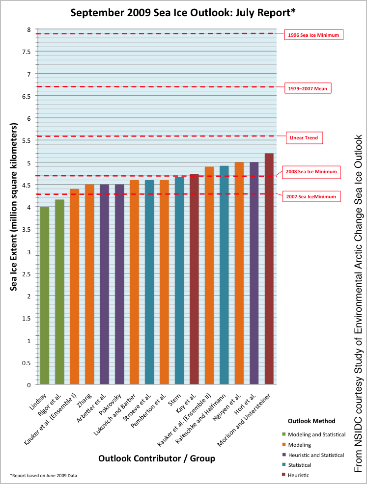 Ведущие гляцеологии сделали свои прогнозы по минимуму льда в Арктике 2009 года за 3 месяца до него.