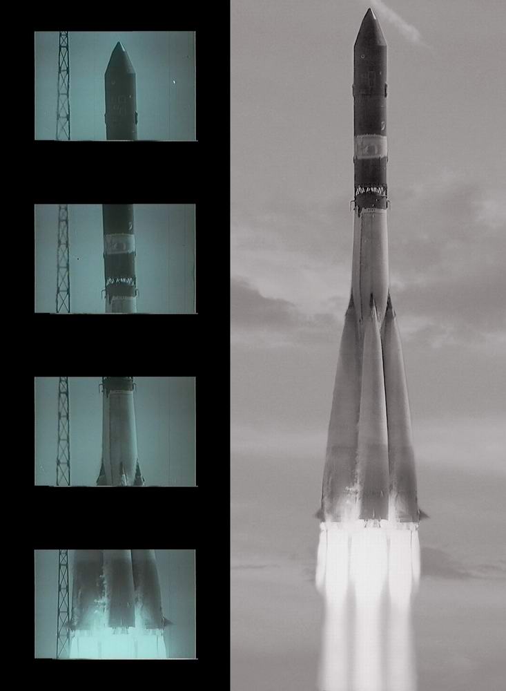 Точнее, не так. Они снимали и на Байке, но не непосредственно старты - это архивные служебные съёмки, отобранные совместно КГБ, нашими ракетчиками и киношниками, как бы не лично Храбровицким. Аварийный старт, если я правильно помню, это один из ранних "Зенит-2", и машина, соответственно, 8К72К