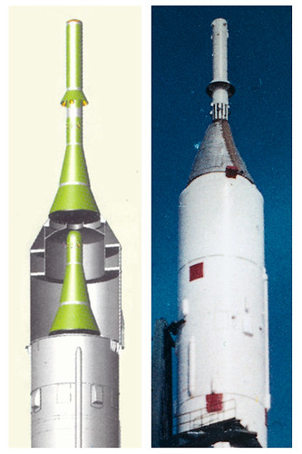 It should also be noted that the illustration posted inaccurately shows the System 82LB72 with a launch shroud wider than the Proton LV. With the illustration placed next to the photo this becomes more apparent...