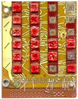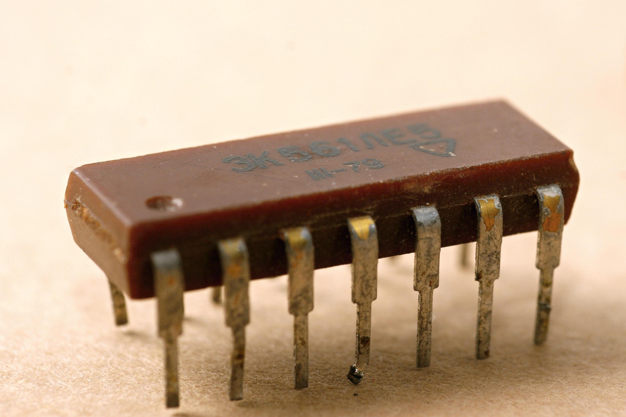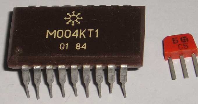Уникальным был цвет этих корпусов - ни до, ни после я не видел такой пластмассы - от янтарно-оранжевого до ярко-красного! Было только несколько микросхем чёрного цвета, а привычного зеленовато-бурого не было ни одной! Цвет этот немного напоминал цвет пластмассы КТ315, но очень сильно варьировался от микросхемы к микросхеме... Все микросхемы были, естественно, с "ромбиками", а некоторые ещё и со "звёздочками". Ни до, ни после я не видел микросхем ТАКОЙ древности советского производства.