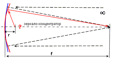 То есть геометрическая оптика не запрещает нам строить концентратор со сколь угодно коротким излучающим фокусом и  сколь угодно удаленным принимающим фокусом. Секрет видимо не в этом...