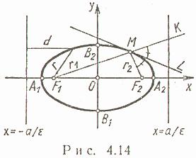 Прямая L – касательная в произвольной точке эллипса M. То есть плоскость отражения (как если бы в этом месте стояло плоское зеркало под таким вот углом). И угол падения прямой F2[/size]M к L равен углу отражения MF1[/size]. Поэтому фокусы эллипса и называются фокусами. Эллиптические концентраторы применяются в твердотельных лазерах, где накачка активной среды производится мощной вспышкой света. В один фокус эллиптического отражателя помещают лампу в другой стержень с резонатором.