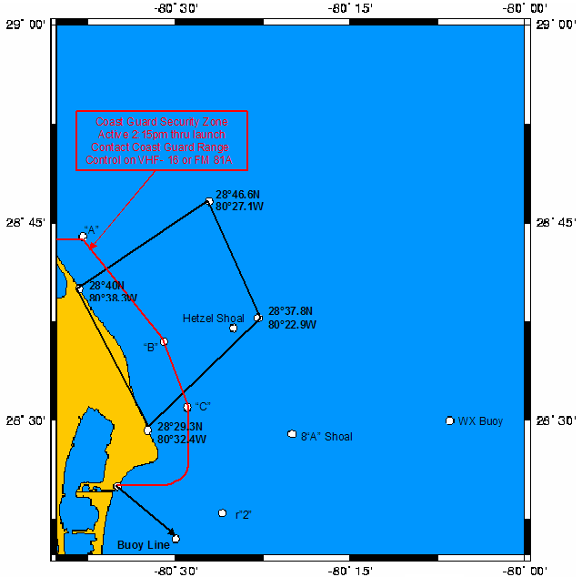Launch hazard area на этот раз несколько отличается от прошлых пусков. Какая-то коротковатая... Для сравнения -
