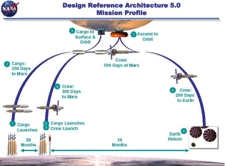 Если сравнивать с  Reference Mission 4, то, похоже, изменилось только то, что корабль решили собирать на орбите - американцы не решились держать возвратную ступень в течение нескольких лет на орбите Марса (ранее я указывал на это как один из недостатков Reference Mission 4). А в остальном - вроде всё также...