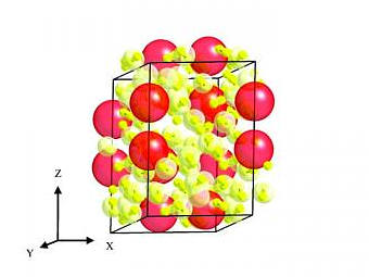 Схема полученного материала. Красным показаны молекулы водорода, а желтым - атомы ксенона.