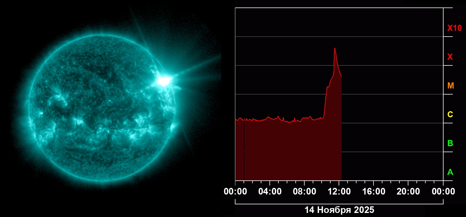 Вспышка произошла в активной области 4274, которая несколько дней назад уже стала источником рекордного события — вспышки уровня X5.16 от 11 ноября. Теперь та же область отвечает сразу за две самые мощные вспышки 2025 года.