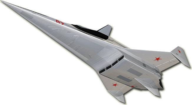 Как ни крути у такого самолёта даже по современным меркам сухая масса должна быть никак не меньше половины взлётной, а для достижения высокой сверхзвуковой скорости ПН должна размещаться внутри фюзеляжа.