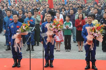 Three 42-year-old astronauts - Zhai Zhigang, Liu Boming and Jing Haipeng - have been selected to carry out the country's third manned space mission, which will last from Sept 25-28, according to China.com.cn.