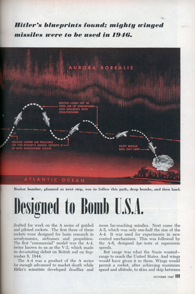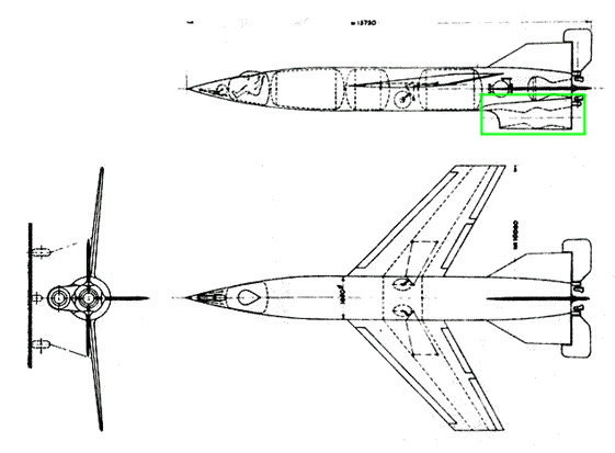 The Glider-Missile A9. In another version the warhead was replaced with a cabin for a pilot and a nose-wheel. Note the arrangement with the guidance section placed between the tanks in conjunction with the carry-through wing spar.