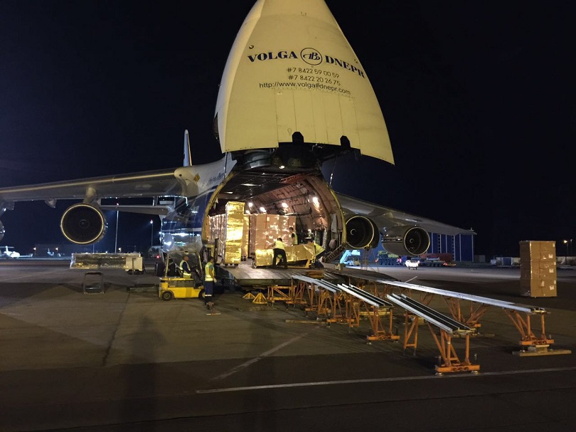 АСТАНА. КАЗИНФОРМ – Сегодня в  Астану специальным авиарейсом из Бордо было доставлено технологическое оборудование из Европы для строящегося сборочно-испытательного комплекса космических аппаратов» (СбИК КА).