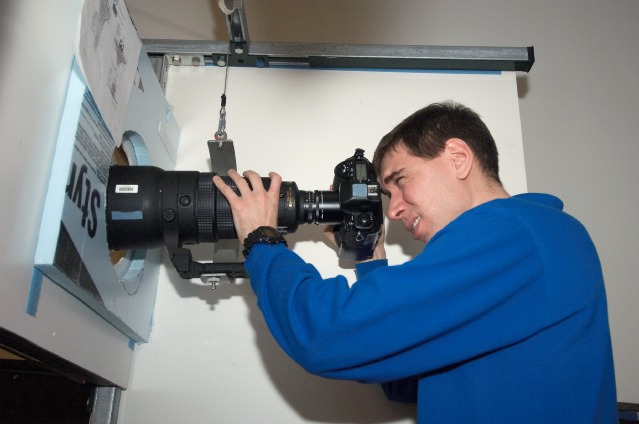 Сергей Волков упорно тренируется в фотоохоте на кувыркающиеся шаттлы. Отметьте силуэт для распознавания своих OV в левом углу снимка, не дай бог сфотографировать чужой корабль.