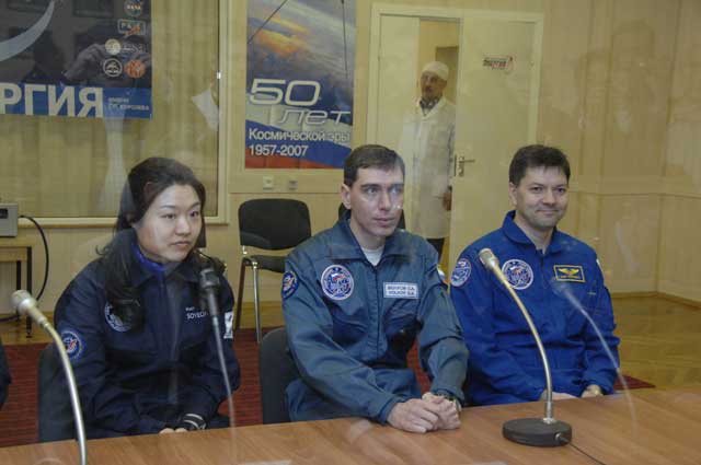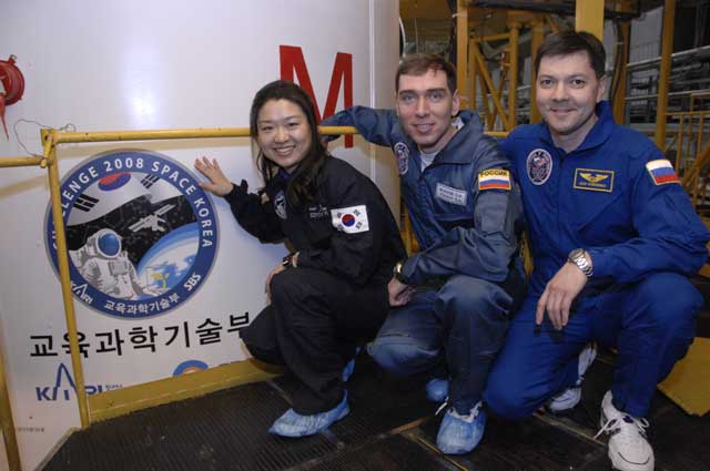 ЦитироватьВ монтажно-испытательном корпусе основной (Сергей Волков (РГНИИ ЦПК им. Ю.А. Гагарина, Россия), Олег Кононенко (РКК "Энергия" им. С.П. Королева, Россия), Сойон Йи (Южная Корея)) и дублирующий (Максим Сураев (РГНИИ ЦПК им. Ю.А. Гагарина, Россия), Олег Скрипочка (РКК "Энергия" им. С.П. Королева, Россия), Сан Ко (Южная Корея)) экипажи транспортного корабля "Союз ТМА-12" провели контрольный осмотр корабля в стартовой конфигурации и ознакомились с доставляемым и возвращаемым оборудованием.