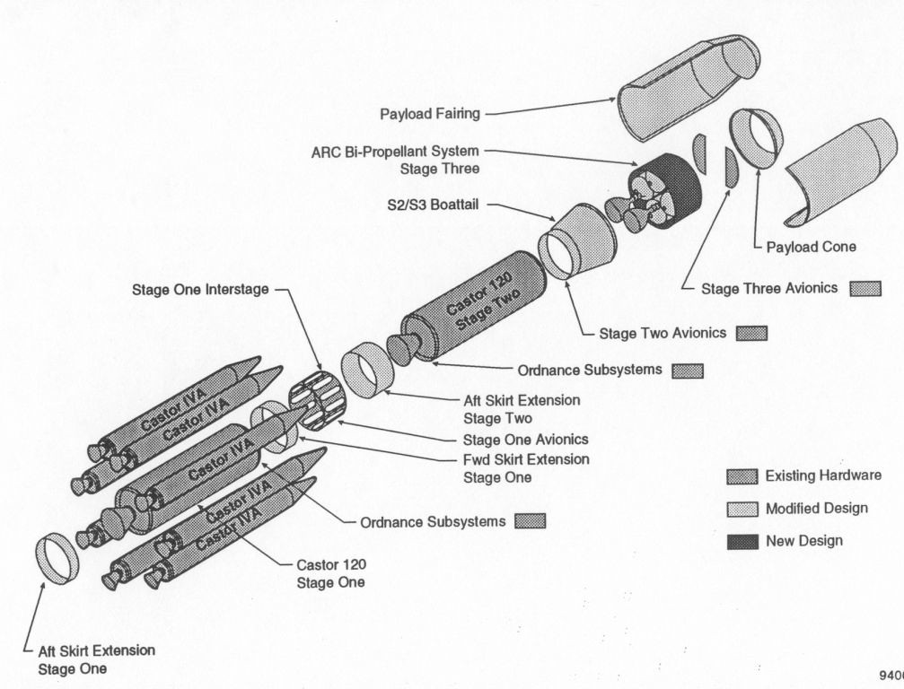 Верхний рисунок, емнип, был обнародован в конце 2007 г. и, вероятно, представлял собой первый вариант с жидкостной 1-й ступенью (хотя и не факт). Два нижних рисунка демонстрируют проработки Орбитал еще 1990-х гг, где жидкостной была только верхняя ступень.