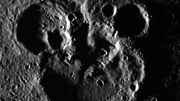 ЦитироватьThis scene is to the northwest of the recently named crater Magritte, in Mercury's south. The image is not map projected; the larger crater actually sits to the north of the two smaller ones. The shadowing helps define the striking "Mickey Mouse" resemblance, created by the accumulation of craters over Mercury's long geologic history.