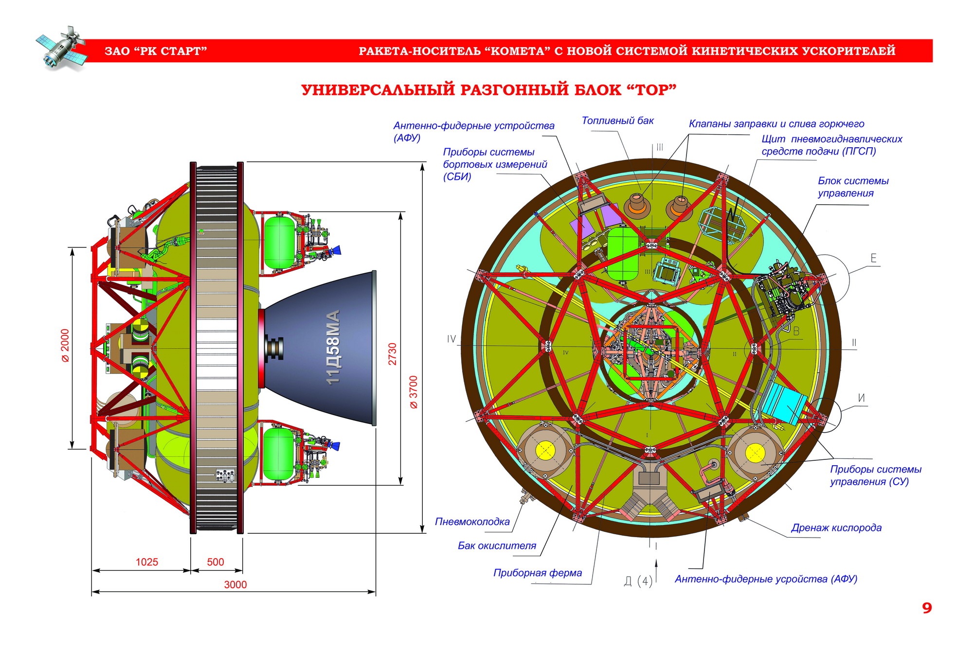 Баковый отсек РБ ТОР явно сделан на базе торового керосинового бака блока Д.  Внутрибаковые устройства видимо оттуда же. РЗТ видимо около пяти тонн.