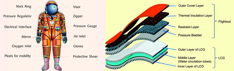 Left - Functional elements of flight suit