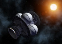 Нужно как-то неподвижно (относительно звездного неба) подвесить фокусирующую линзу (100 км в диаметре) на расстоянии 1 миллиард км от Солнца на годы.