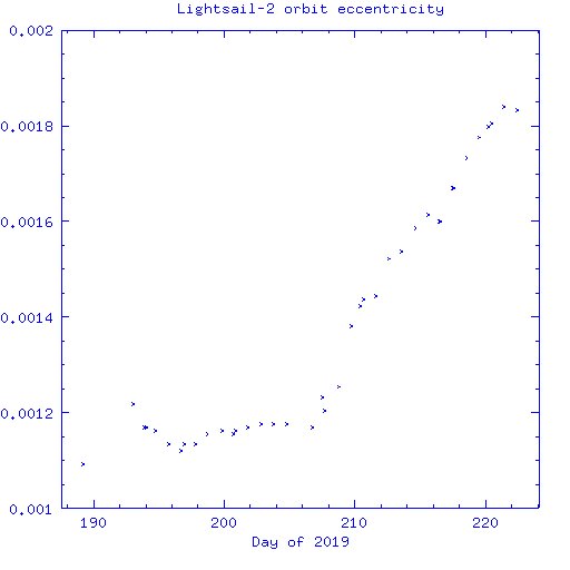 С 1 июля 2019 период LightSail-2 уменьшился на 0.6 секунды. Соответственно, средняя высота немного возросла.