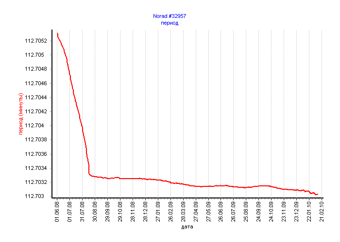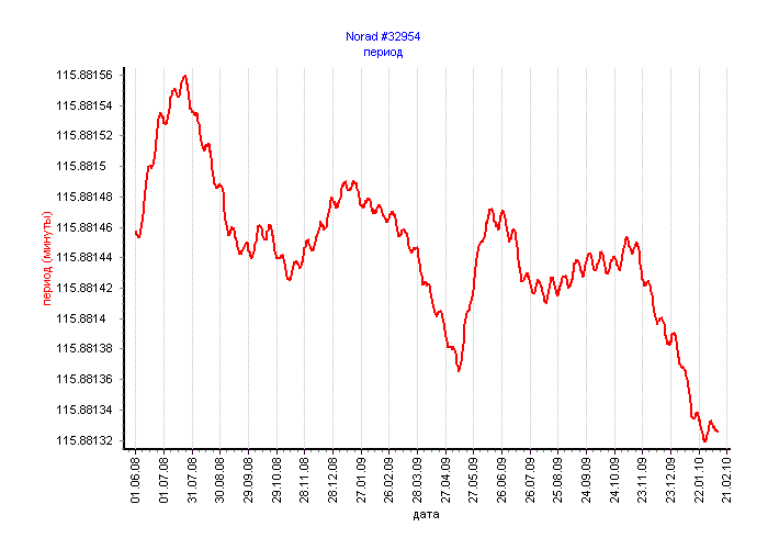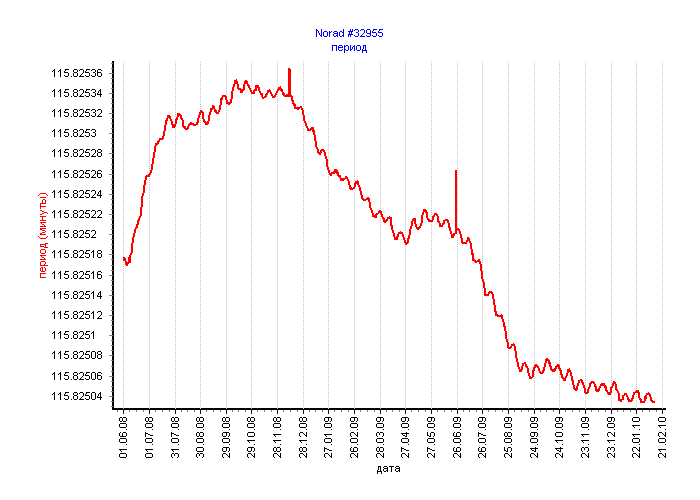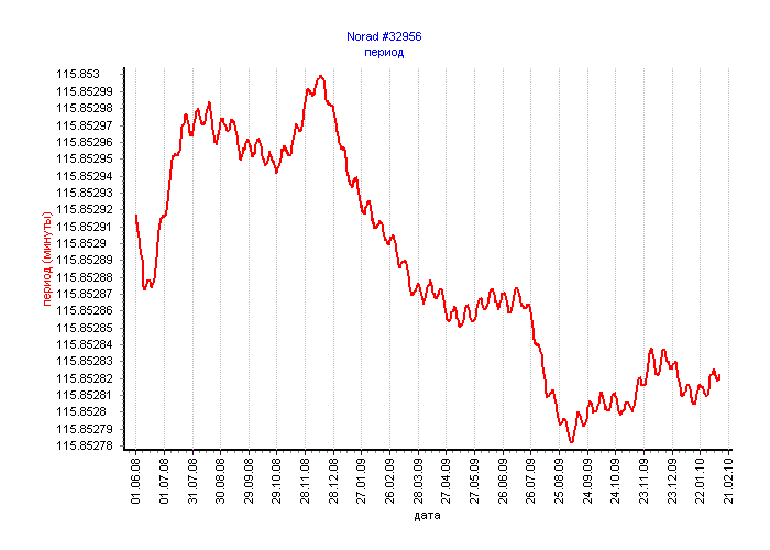 Вот графики для соседей нашего спутника по запуску. Три первых - это военные спутники. Четвёртый - носитель. Все графики привожу с начала июня 2008. Там носитель спускался ещё в конце мая 2008.
