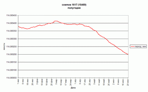Как видим, имеются мелкомасштабные осцилляции периода, которые на не очень малом промежутке времени (к примеру, нескольких месяцев в начале 2008 г.) дают не опускание, а подьем аппарата. Да и вообще, из-за практического отсутствия "трения" КА падает очень медленно.