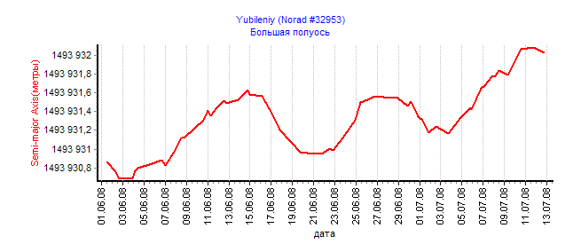 Точность знания элементов орбиты КА (типа орбиты "Юбилейного") по данным NORAD в виде TLE - не лучше нескольких км по координатам (~сек по периоду). Попытки анализировать эти данные на предмет выявления изменений на метры автоматически зачисляет анализаторов в ряды "ГРАВИЦАПЩИКОВ" ...