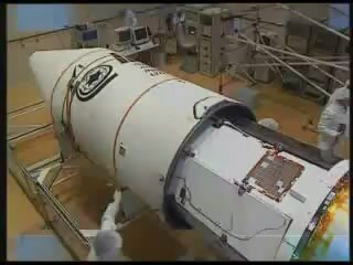 Предстартовая подготовка РН "Шавит". Накатка головного обтекателя.