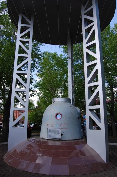Настоящий СА Союза-33 (экипаж: Николай Рукавишников и Георгий Иванов-Какалов) лег в основу памятника в Томске