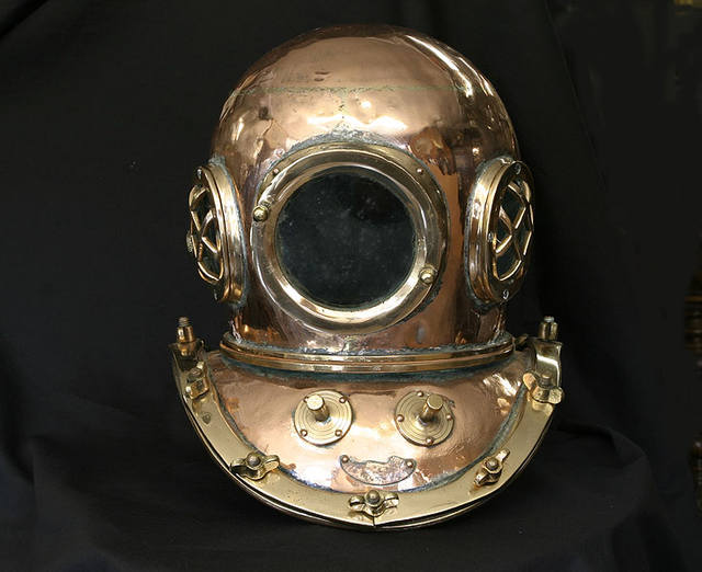 б) встретил я тут эстонских водолазов, и двазды удивился: они в советском двенадцатиболтовом водолазном снаряжении 1986 года выпуска. как положено с помпой, грузами, радио?станцией.