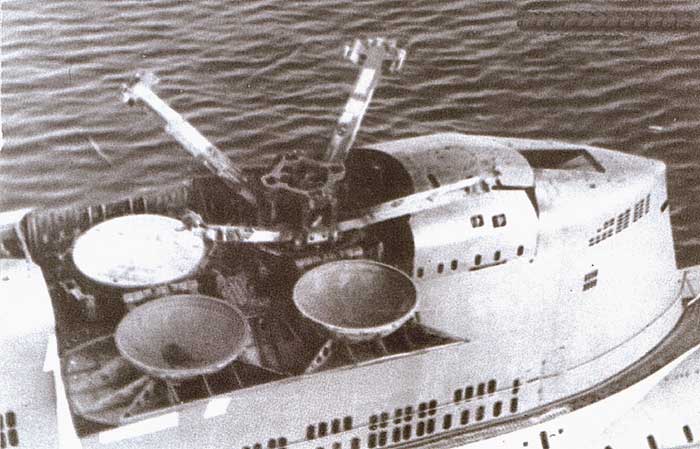 Она выезжает из гермоотсека назад, на пусковые направляющие. А потом, на них в бок, за борт лодки. Короче извратились.
