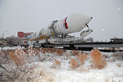 Moving toward Russia's year-closing launch, engineers completed the encapsulation of the Fregat-AngoSat stack on Monday followed by installation of the upper composite on the two-stage Zenit rocket on Wednesday. The assembled Zenit-3SLBF, also known under the simpler designation Zenit-3F, was rolled to Baikonur's Site 45/1 in snowy conditions on Sunday morning to enter the typical two-day on-pad processing campaign comprising the final checkouts of the vehicle ahead of an overnight countdown to an early morning liftoff on Wednesday, local time.
