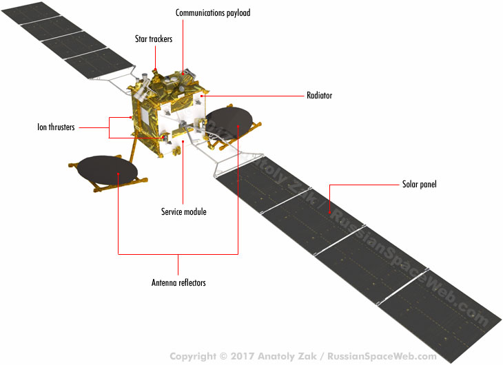 RKK Energia also said that the platform had consisted of Russian-made components and the company's newest virtual reality design center assisted in the development of the satellite, however, the spacecraft's communications payload was apparently supplied by the European consortium Airbus Defense and Space.